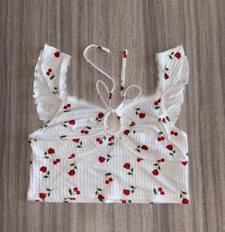 White tank top 0XL cherries roses cherry flutter sleeve $10Tucson, AZ