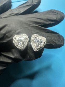 Halo Heart VVS Moissanite Earrings - Sterling Silver - (Tarnish Resistant/Nickel Free) - Screw Back$80West Allis, WI