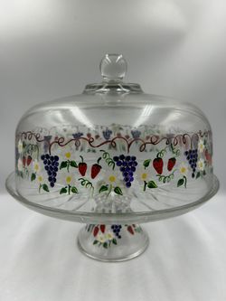 Glass Dome Cover Cake Plate Stand Hand Painted Fruit Design 12”$50Hialeah, FL
