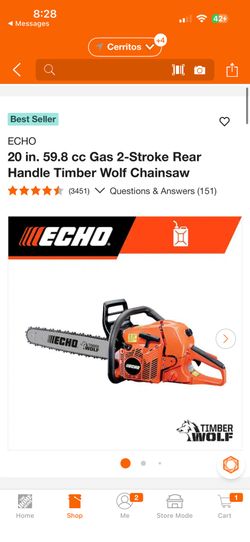 ECHO 20 in. 59.8 cc Gas 2-Stroke Rear Handle Timber Wolf Chainsaw$350Downey, CA