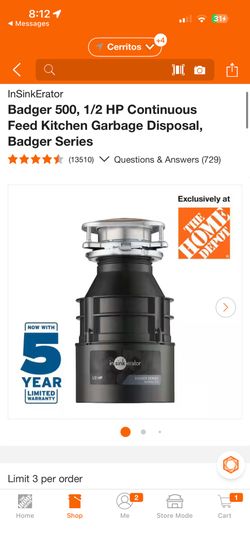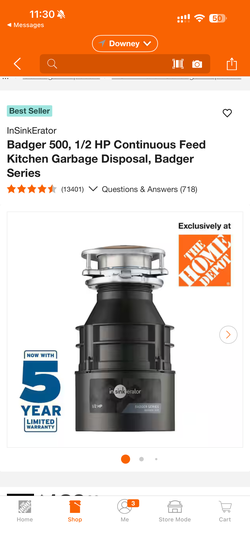 InSinkErator Badger 500, 1/2 HP Continuous Feed Kitchen Garbage Disposal, Badger Series$100Downey, CA