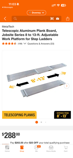 MetalTech Telescopic Aluminum Plank Board, Jobsite Series 8 to 13-ft. Adjustable Work Platform for Step Ladders$220Downey, CA
