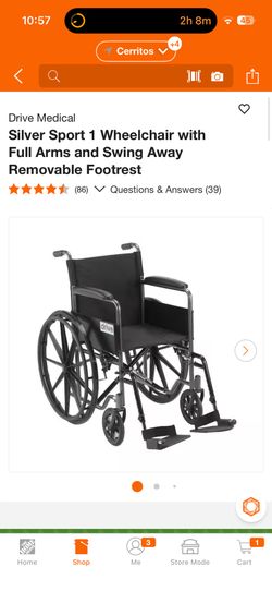 Drive Medical Silver Sport 1 Wheelchair with Full Arms and Swing Away Removable Footrest$85Downey, CA