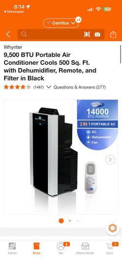 Whynter 9,500 BTU Portable Air Conditioner Cools 500 Sq. Ft. with Dehumidifier, Remote, and Filter in Black$350Downey, CA