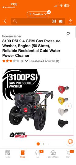 Powerwasher 3100 PSI 2.4 GPM Gas Pressure Washer, Engine (50 State), Reliable Residential Cold Water Power Cleaner$250Downey, CA