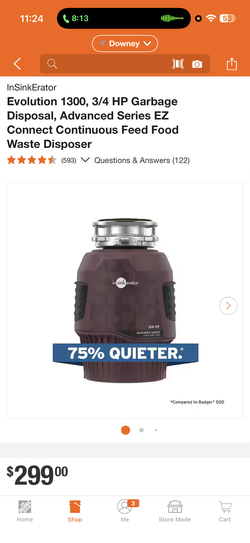 InSinkErator Evolution 1300, 3/4 HP Garbage Disposal, Advanced Series EZ Connect Continuous Feed Food Waste Disposer$220Downey, CA