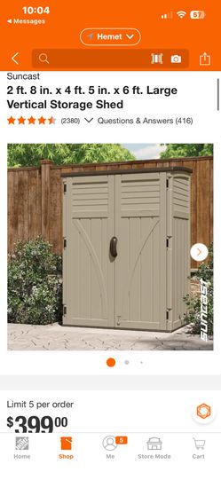 Suncast 2 ft. 8 in. x 4 ft. 5 in. x 6 ft. Large Vertical Storage Shed$280Downey, CA
