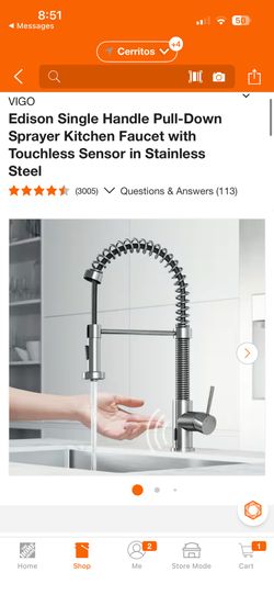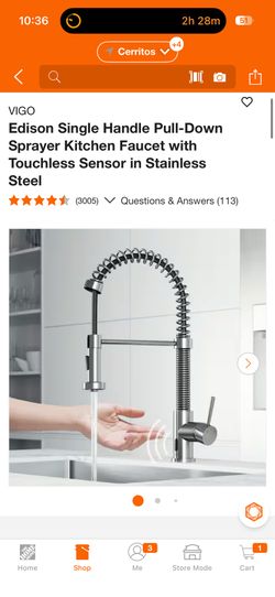 VIGO Edison Single Handle Pull-Down Sprayer Kitchen Faucet with Touchless Sensor in Stainless Steel$160Downey, CA