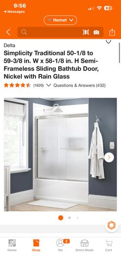 Delta Simplicity Traditional 50-1/8 to 59-3/8 in. W x 58-1/8 in. H Semi-Frameless Sliding Bathtub Door, Nickel with Rain Glass$240Downey, CA