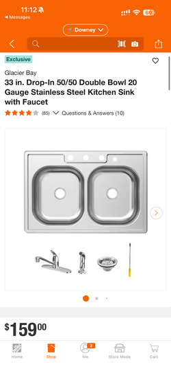 Glacier Bay 33 in. Drop-In 50/50 Double Bowl 20 Gauge Stainless Steel Kitchen Sink with Faucet$115Downey, CA