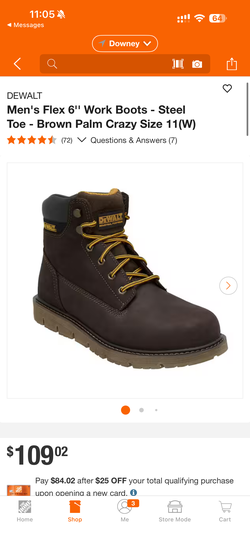 DEWALT Men's Flex 6'' Work Boots - Steel Toe - Brown Palm Crazy Size 11(W)$80Downey, CA