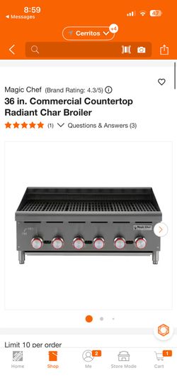 Magic Chef (Brand Rating: 4.3/5) 36 in. Commercial Countertop Radiant Char Broiler$1,200Downey, CA
