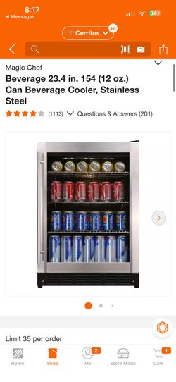 Magic Chef Beverage 23.4 in. 154 (12 oz.) Can Beverage Cooler, Stainless Steel$380Downey, CA