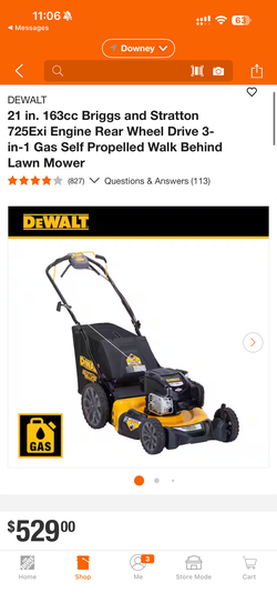 DEWALT 21 in. 163cc Briggs and Stratton 725Exi Engine Rear Wheel Drive 3-in-1 Gas Self Propelled Walk Behind Lawn Mower$375Downey, CA