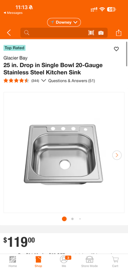 Glacier Bay 25 in. Drop in Single Bowl 20-Gauge Stainless Steel Kitchen Sink$85Downey, CA