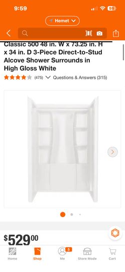 Delta Classic 500 48 in. W x 73.25 in. H x 34 in. D 3-Piece Direct-to-Stud Alcove Shower Surrounds in High Gloss White$370Downey, CA