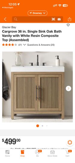 Glacier Bay Cargrove 36 in. Single Sink Oak Bath Vanity with White Resin Composite Top (Assembled)$250Downey, CA