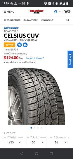 Toyo Celsius 235/60R18 Tire$150Renton, WA