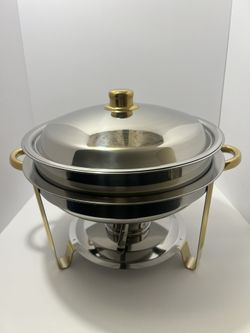 Winco Winware 4 Quart Round Stainless Steel Gold Accented Chafer, Silver$30Fishers, IN