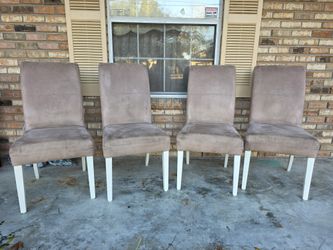 Velvet Suede Upholstered Accent Dining Chairs Beige White Legs Set of 4