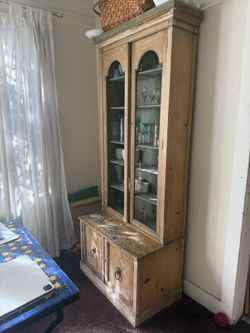 Vintage Wood Hutch / Cabinet w Chicken Wire Doors (Farmhouse Style) $175Baldwin Hills, CA
