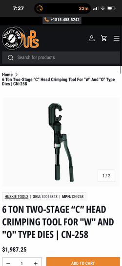 Huskie CN-258 Hydraulic Compression Crimper 6-Ton Crimping Press FREE SHIPPING$455Tacoma, WA