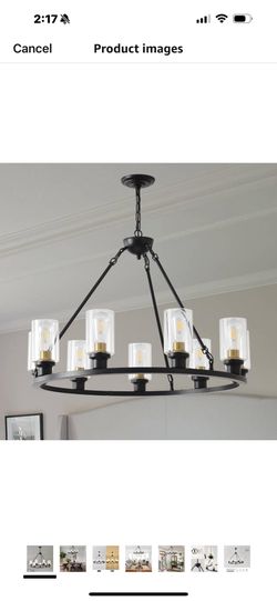 32inch 9Light Wagon Wheel Chandelier with Glass Shade Modern Farmhouse Round Industrial Black Chandelier, Hanging Pendant Light Fixture for Living, Di$120Lakeland, FL