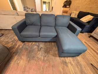 Blue Sectional with Reversible Chaise – Compact & Comfortable (WE DELIVER / HAUL AWAY OLD COUCHES)$450Bellingham, WA