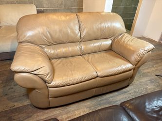Genuine Tan Leather Loveseat – Soft & Comfortable (WE DELIVER / HAUL AWAY OLD COUCHES)$250Bellingham, WA