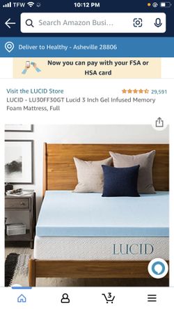 LUCID - LU30FF30GT Lucid 3 Inch Gel Infused Memory Foam Mattress, Full$59Dacula, GA