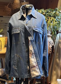 This lightweight denim jacket showcases a classic blue color and a traditional trucker style. It features a shirt-style collar and a comfortable fit, $25Cranston, RI