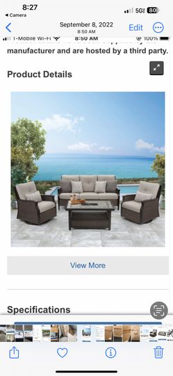 New 4 Piece Agio Conway Woven Deep Seating Set With All Sunbrella Cushions And Accent Pillows. Assembled Ready To Go. Final Price $1450 Firm $1,450Los Angeles, CA