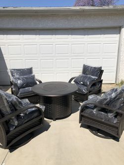 Brand New Gorgeous 5 Piece Conversation Set With 4 Swivel RST Brand Chairs.a nd Cast Aluminum Fire Pit Table. Ready To Go Final Price $1650 Firm $1,650Los Angeles, CA