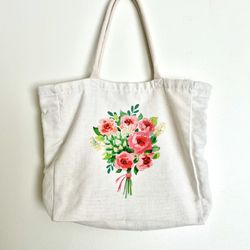 Soft Woven Tote Bag Floral Focal One Side Clean $5San Clemente, CA