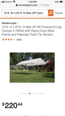 10 ft. H x 20 ft. D Max AP All-Purpose 8-Leg Canopy in White with Heavy-Duty Steel Frame and Patented Twist-Tie Tension$170Glendale, CA
