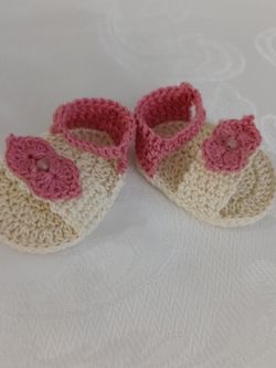Baby girl summer sandals, hand crafted, new, made With Cotton yarns, fits 0-3months, $5.00.$5Greensboro, NC