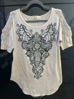 Vocal Womens Crystal Taupe Cross Wings With Open-Shoulder Shirt$25Colorado Springs, CO