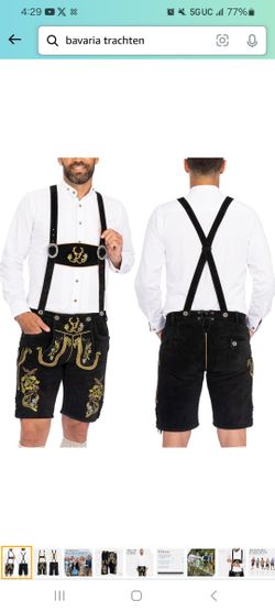 BAVARIA TRACHTEN Lederhosen Men - Genuine Leather Authentic German Lederhosen for Men, Oktoberfest Outfit - Short $110Miami, FL