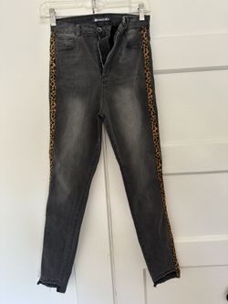 Tractr Blue-Grey Skinny Jeans w/ Velvet Cheetah Stripe — Size 27$55Los Angeles, CA