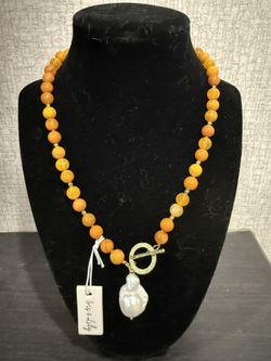 Iris and Lily London Agate Beaded Necklace Orange and freshwater pearl NWT$25San Diego, CA