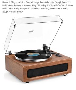 Record Player All-in-One Vintage Turntable for Vinyl Records Built-in 4 Stereo Speakers High Fidelity Audio AT-3600L Phono Belt Drive Vinyl Player BT $140Chino Hills, CA