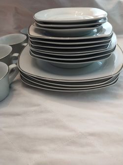 GIBSON EVERYDAY CHINA White/Silver Rimmed 18pc Dining Set$150Alafaya, FL