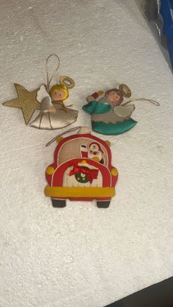 Three Satin Homemade Angels And Santa In A Car Waving double Sided Ornaments$14Bakersfield, CA