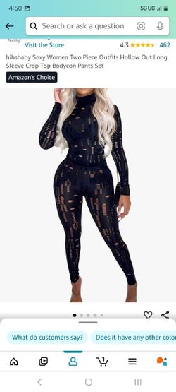 Sexy Women Two Piece Outfits Hollow Out Long Sleeve Crop Top Bodycon Pants Set