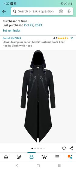 Mens Steampunk Jacket Gothic Costume Frock Coat Hoodie Cloak With Hood