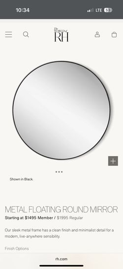 Restoration Hardware METAL FLOATING ROUND MIRROR $500Las Vegas, NV