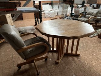 Solid oak table and four chair chairs can be used for dining or gaming$289Virginia Beach, VA