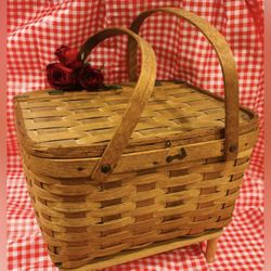 100 YR Vintage Original PICNIC LUNCH BASKET Fine Art Artisan Weave Wood Antique with RARE Table Platform Insert OLD Woven Wooden Collectible HILLCREST$111San Diego, CA
