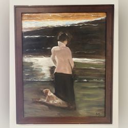 Original Fine Art Painting Artist Signed Canvas Framed Vintage Mixed Medium Oil / Acrylic Lady / Dog HILLCREST / UNIVERSITY HEIGHTS$222San Diego, CA