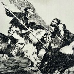 SPANIARDS HUNTED BULLS ON HORSEBACK Original Antique Vintage Fine Art GOYA Print of Etching 1960’s Spain Printed Collectible Ephemera HILLCREST$77San Diego, CA